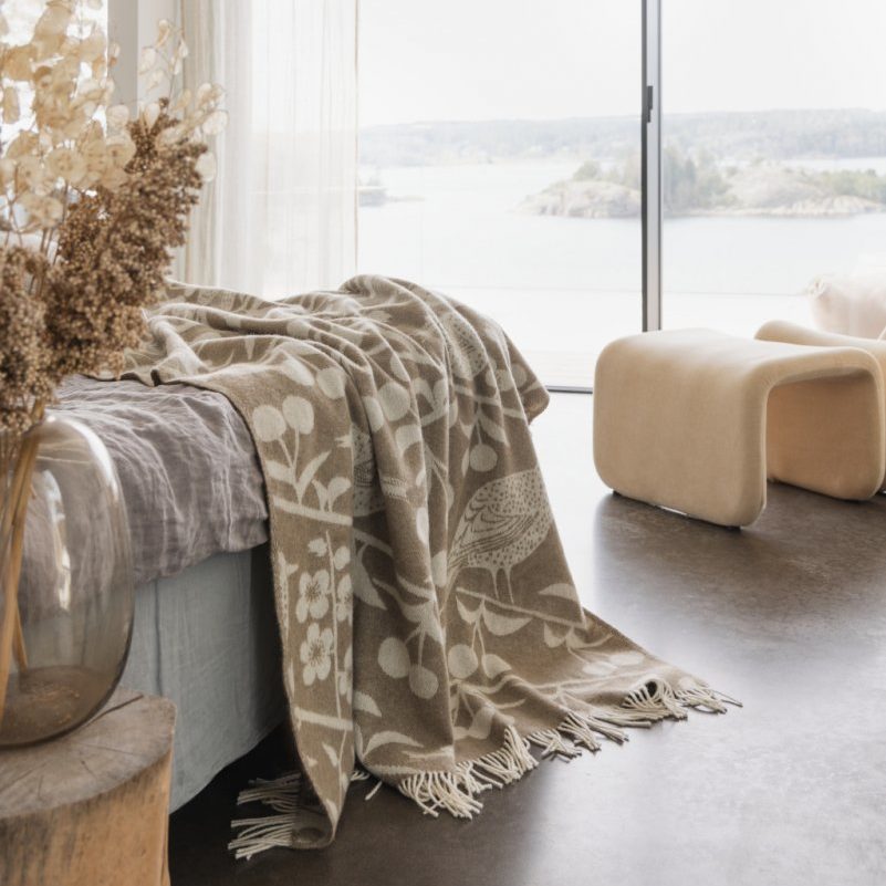 ・ブランケット Körsbärsträdgården (Brown, Off White) (ウール100%)